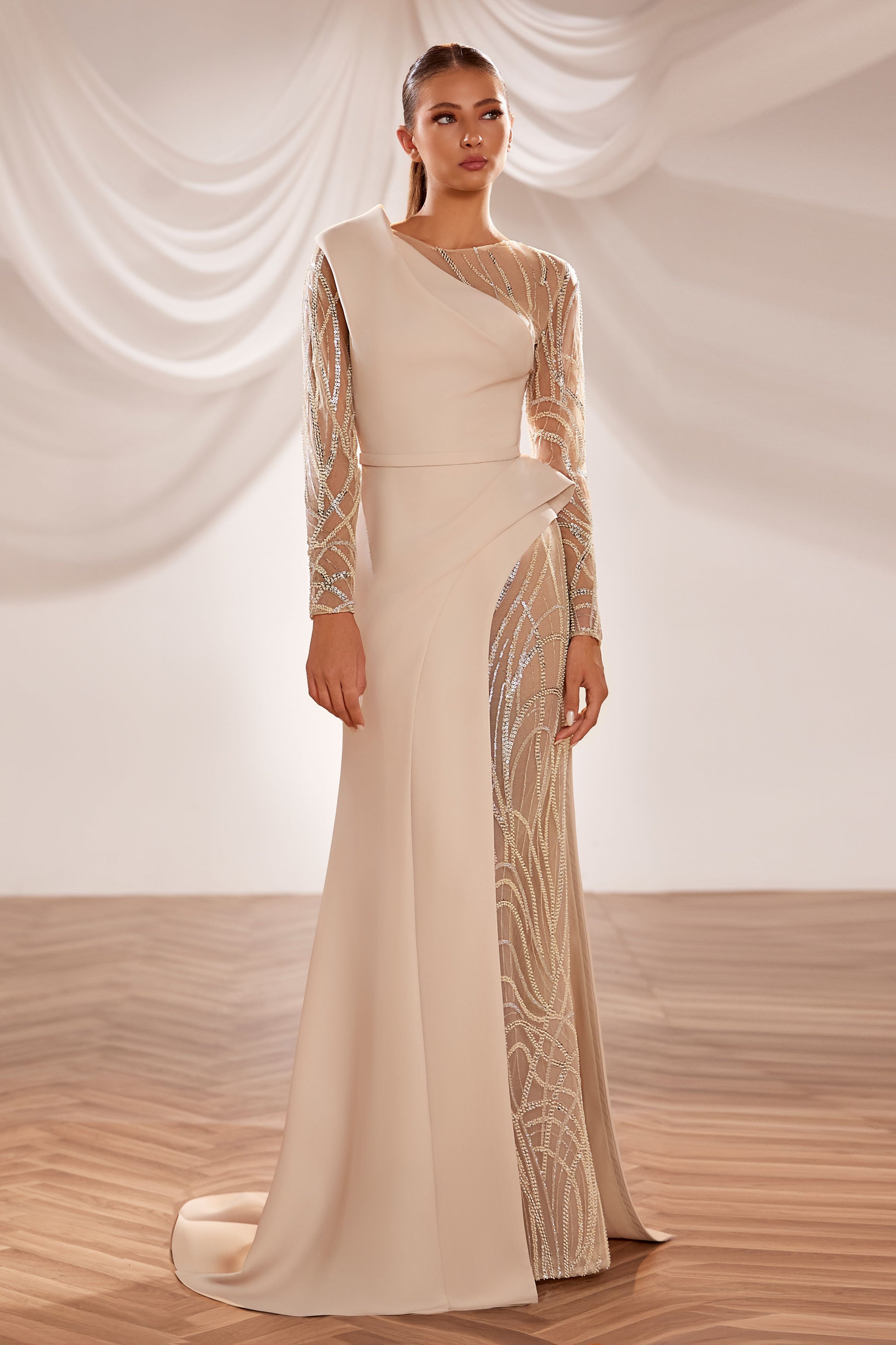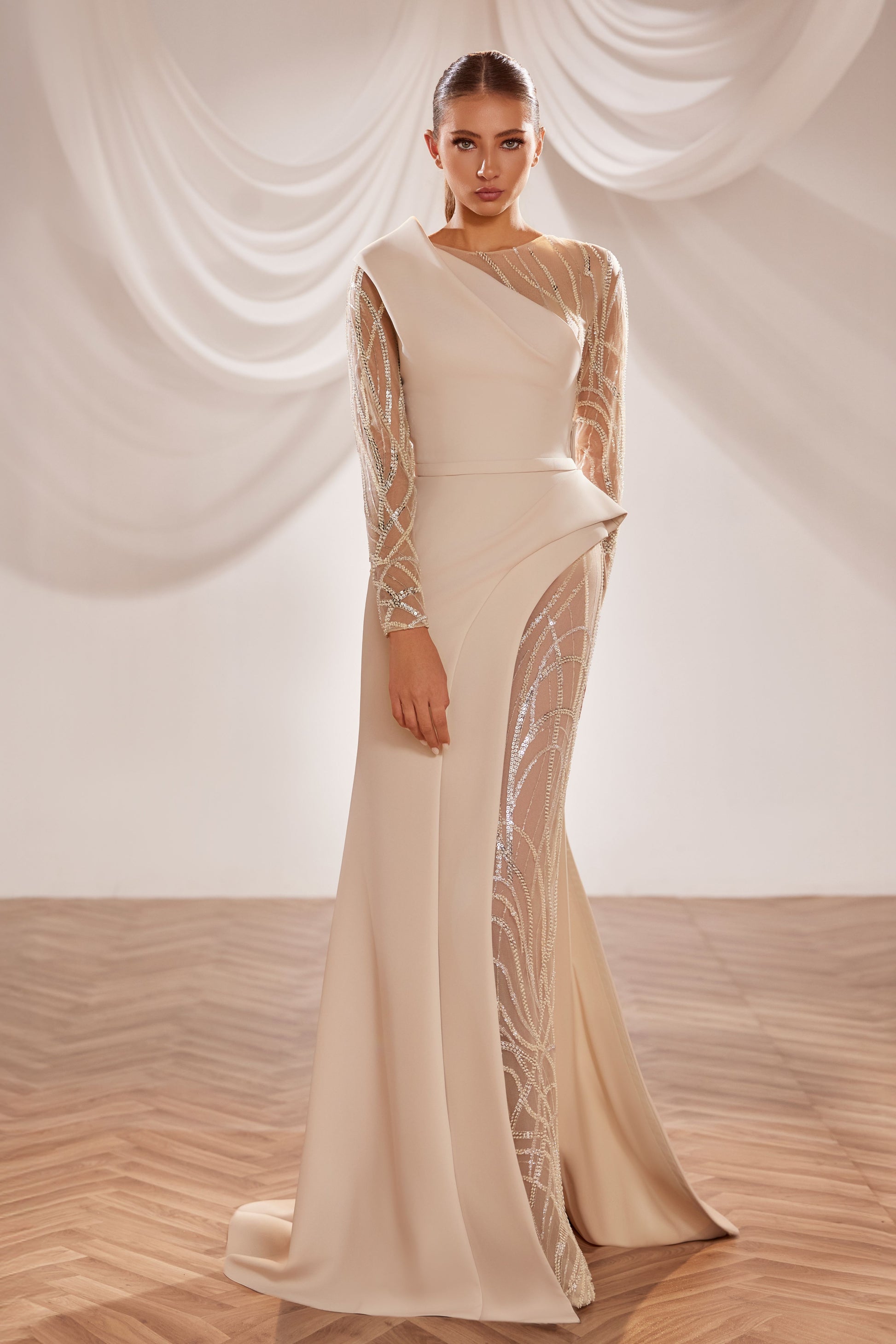 Beaded Long Sleeve Gown
