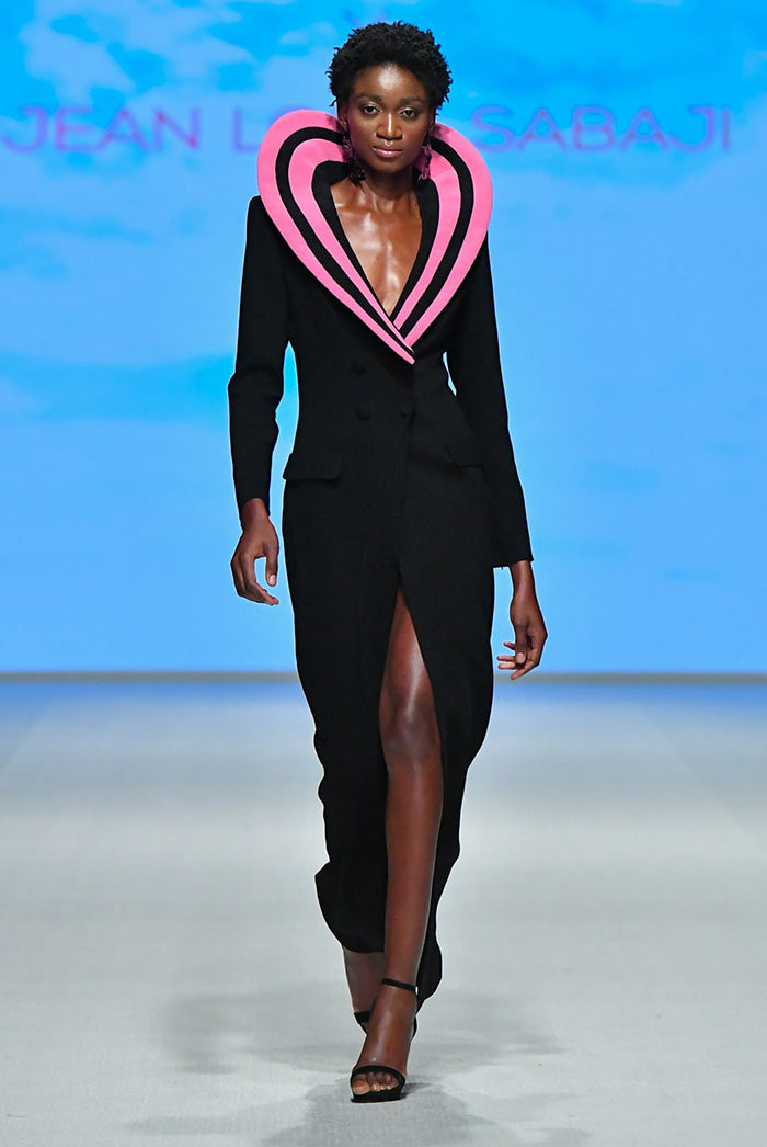 Crepe Gown with Structured Heart Collar