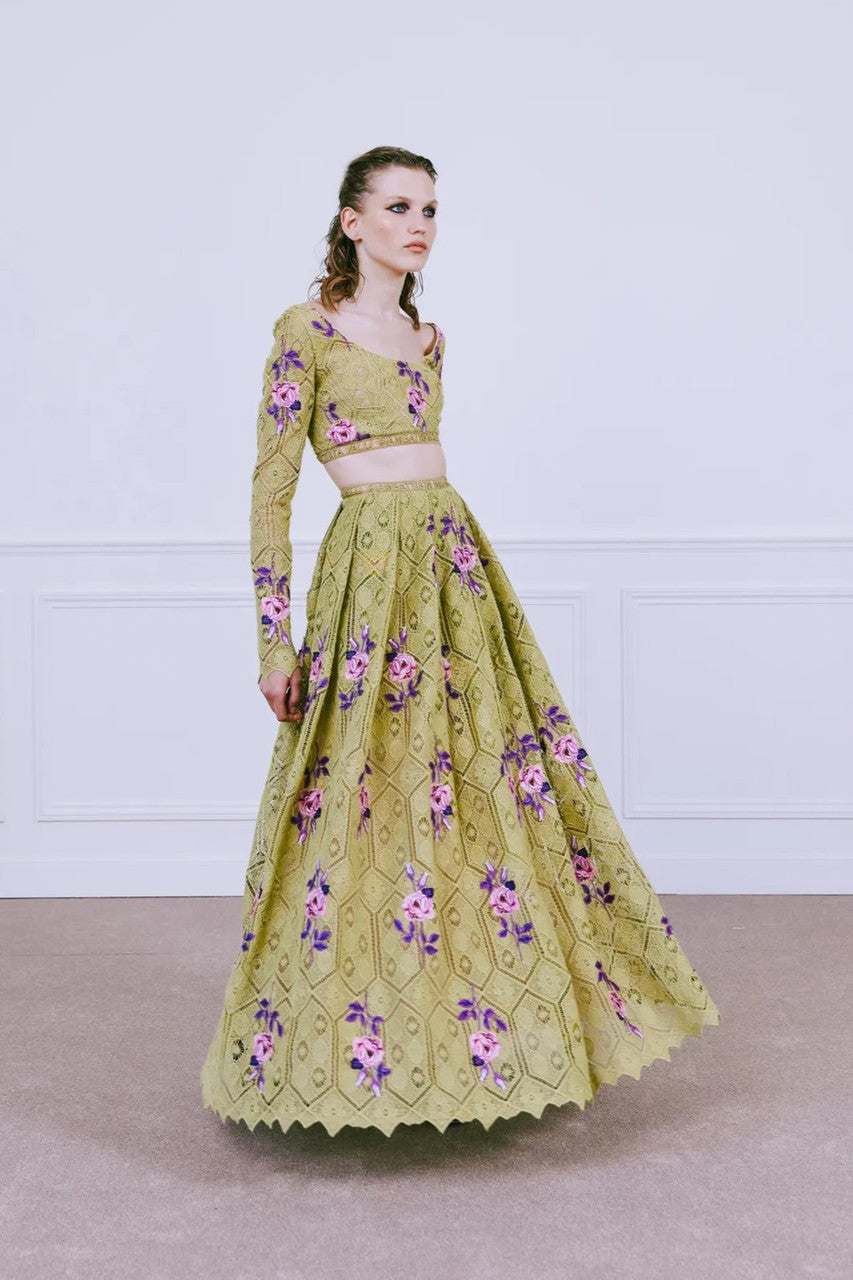Embroidered- Macramé Top and Skirt