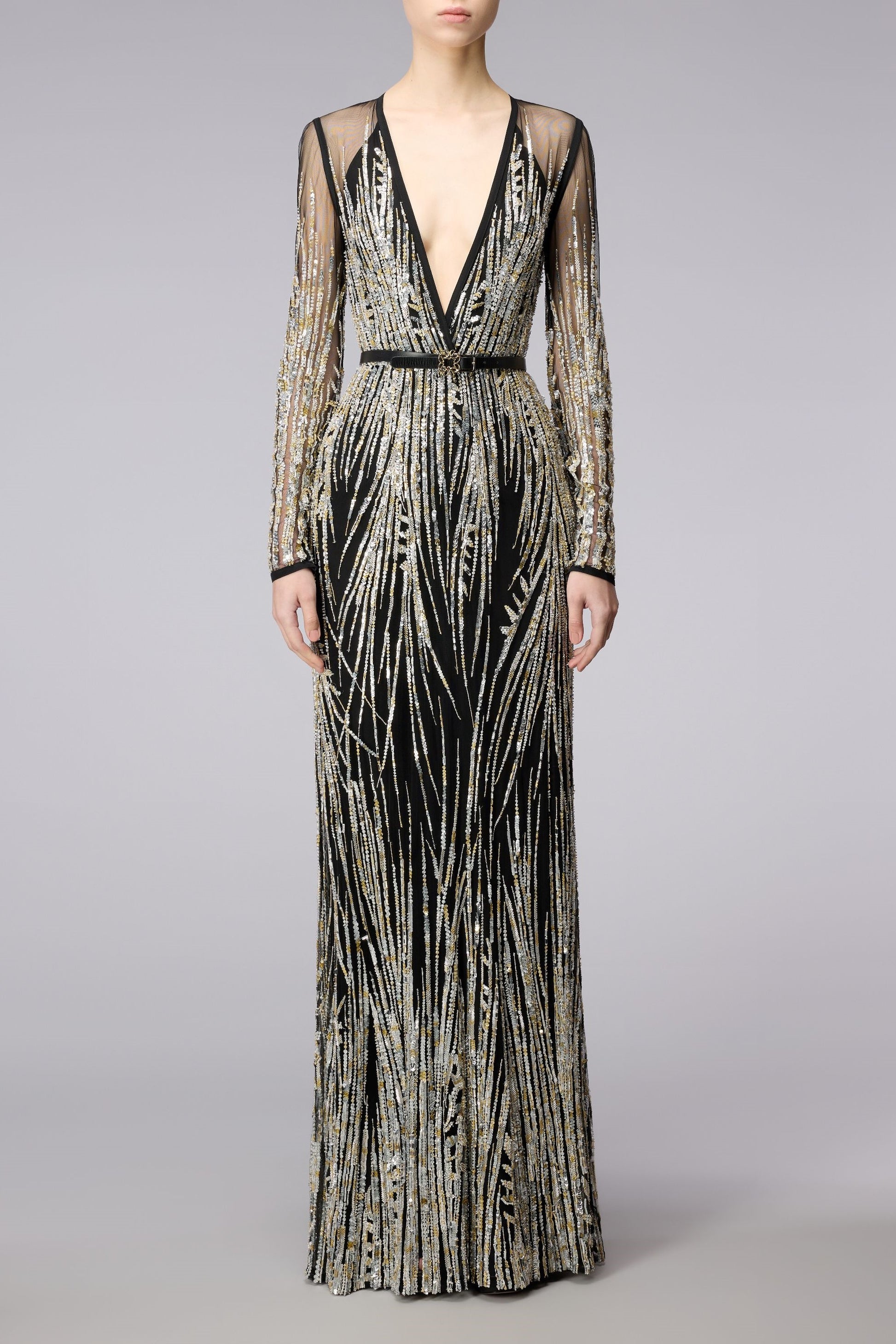 Long Sleeve Tulle Embroidered Gown