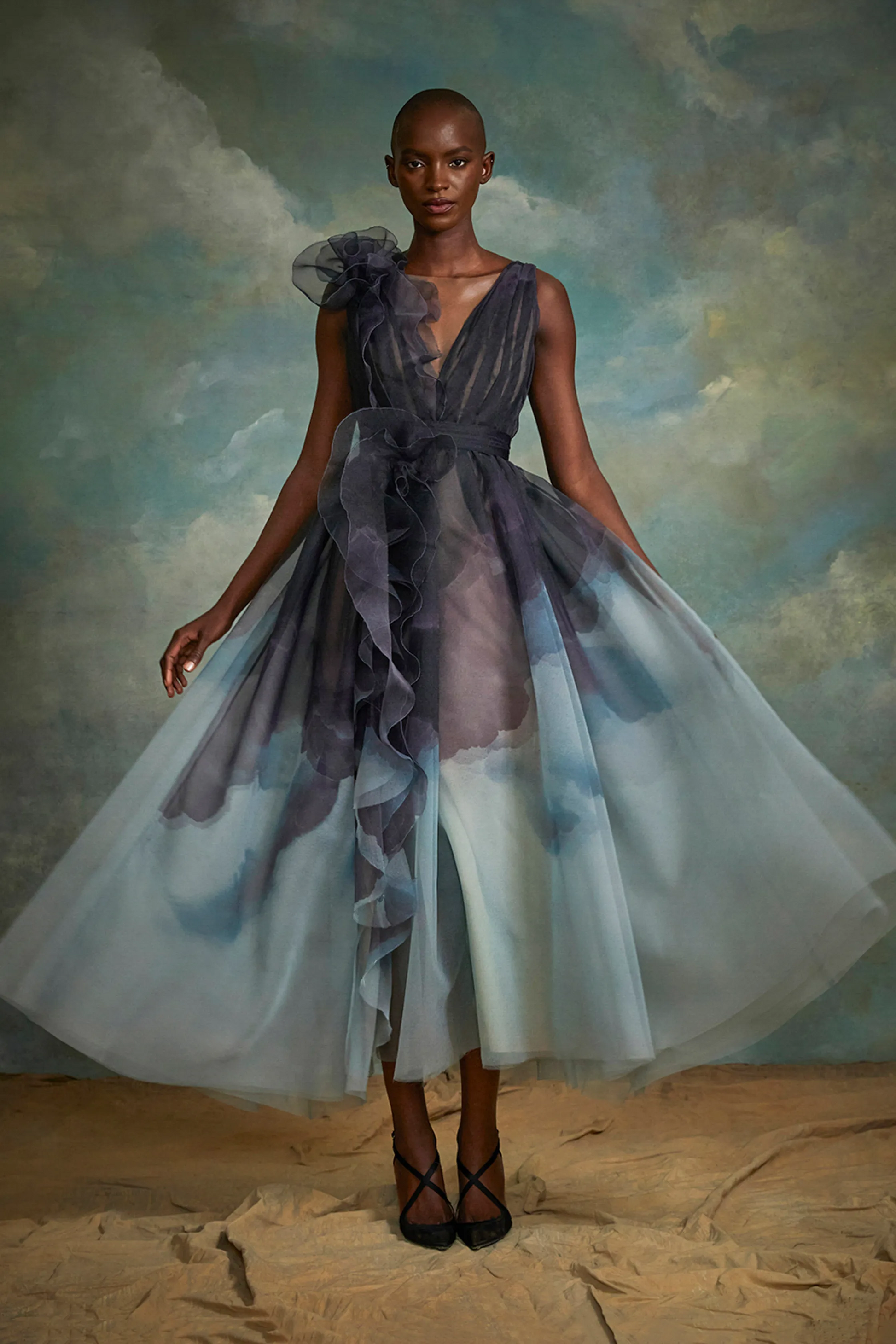 Sleeveless Flower Ruffle Midi Dress